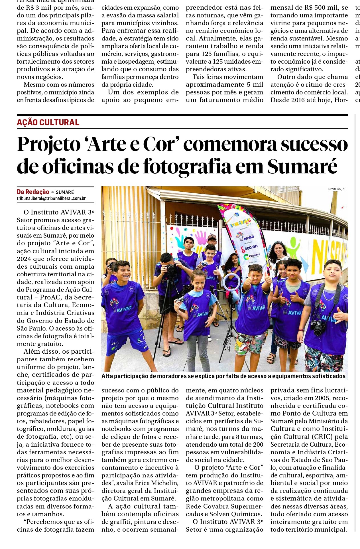 Avivar comemora sucesso de oficinas em Sumaré – Tribuna Liberal – 30/12/2025
